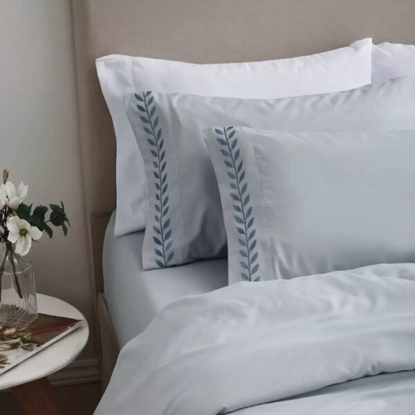 JUEGO DE SÁBANAS ALCOYANA BRODERY 600 H MICROFIBRA KING -HOJITAS CELESTE